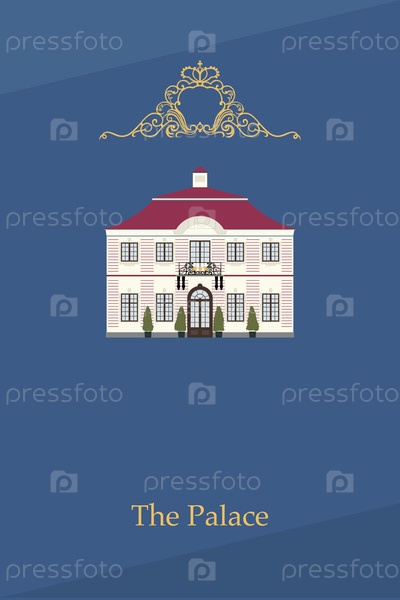Векторный рисунок дворца 17-го века, изолированного на синем фоне. (Нижний парк Петродворец, дворец Марли, Петерхоф, Санкт-Петербург)