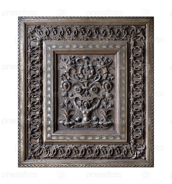 Декоративная деревянная архитектурная панель с цветочным орнаментом изолирована на белом фоне