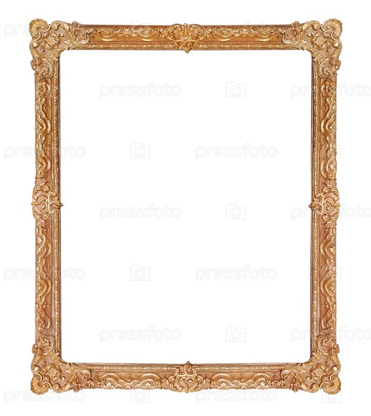Золотая рама для картин, зеркал или фотографий, изолированных на белом фоне