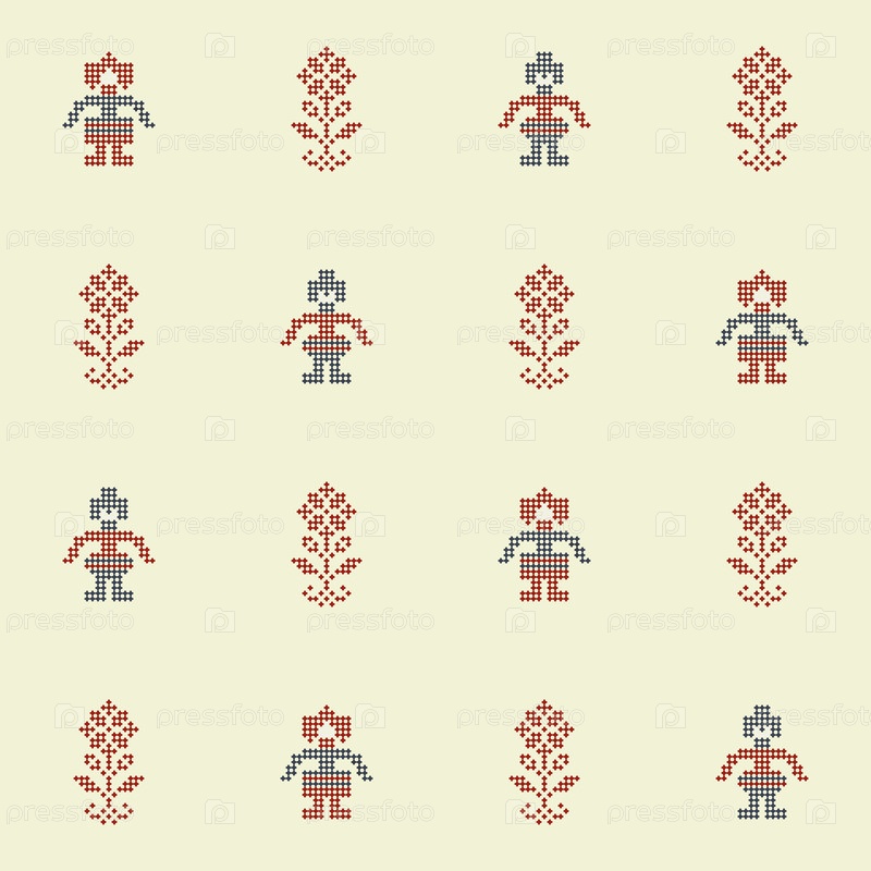 Бесшовный узор с народной парой и цветами. фольклорный вектор