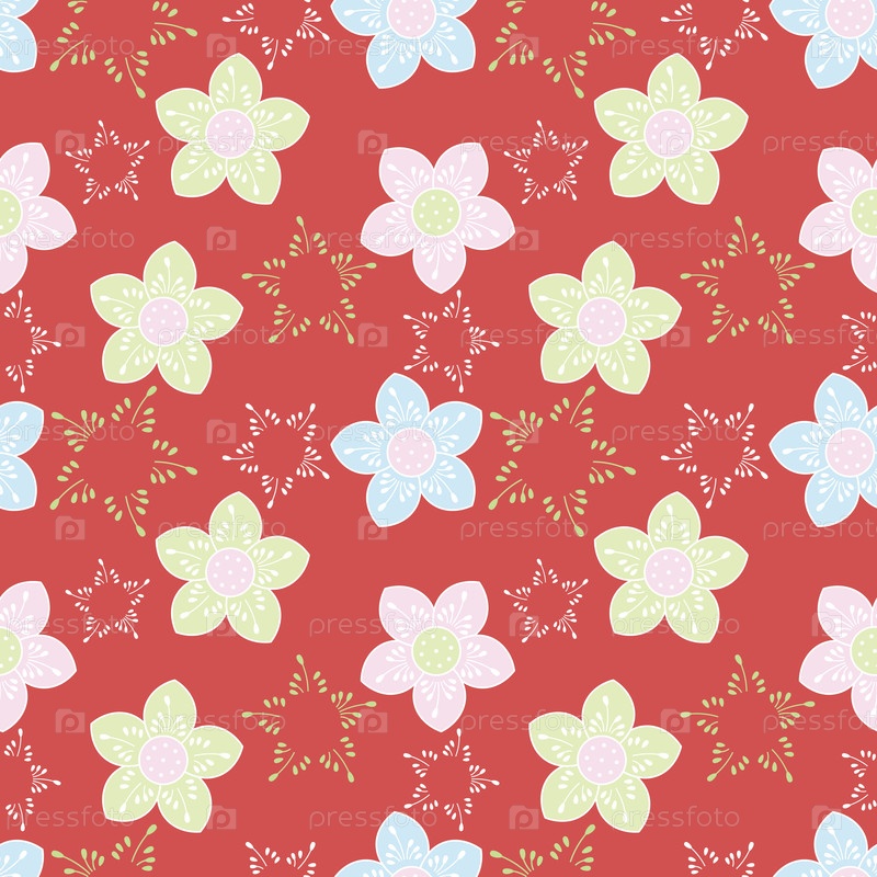 Бесшовный вектор современного рисунка с изолированными цветами и листьями