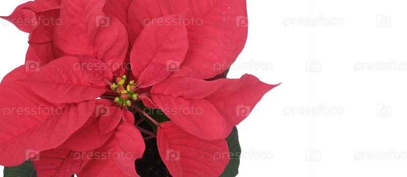 Рождественский баннер с пуансеттией и идеей Счастливого Нового года изолирован на белом фоне, вырезка готова. очень высокое разрешение