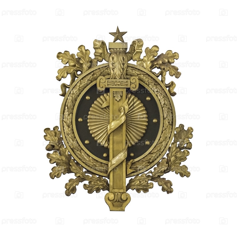 Золотые декоративные венки со звездой и мечом изолированы на белом фоне