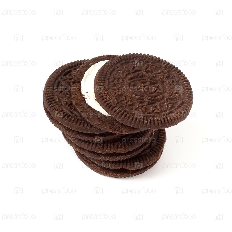 Шоколадные печенье, наполненное белым сливком, изолированным на белом фоне