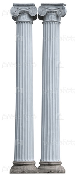 Мраморная коринфская колонна на белом фоне