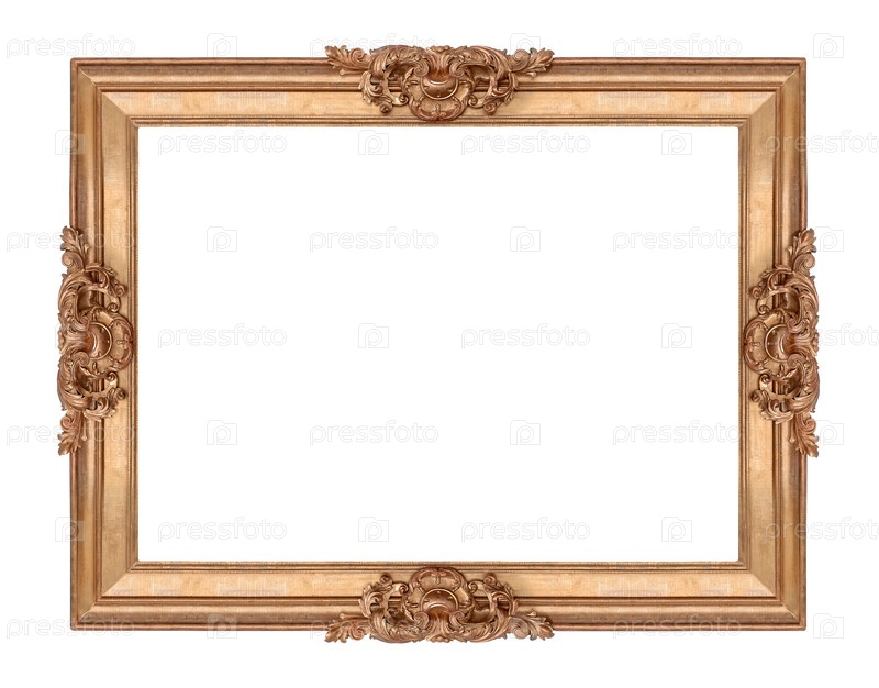 Золотая рама для картин, зеркал или фотографий, изолированных на белом фоне