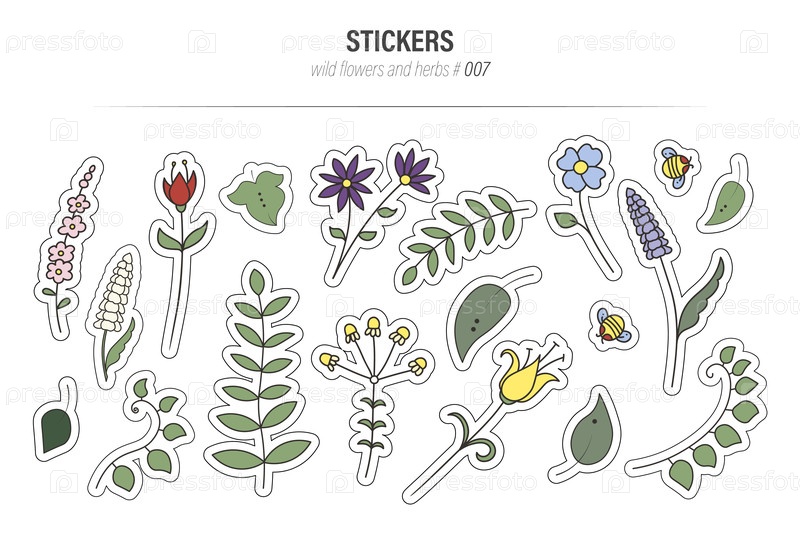 Дикие цветы и травы вкладывают векторную иллюстрацию