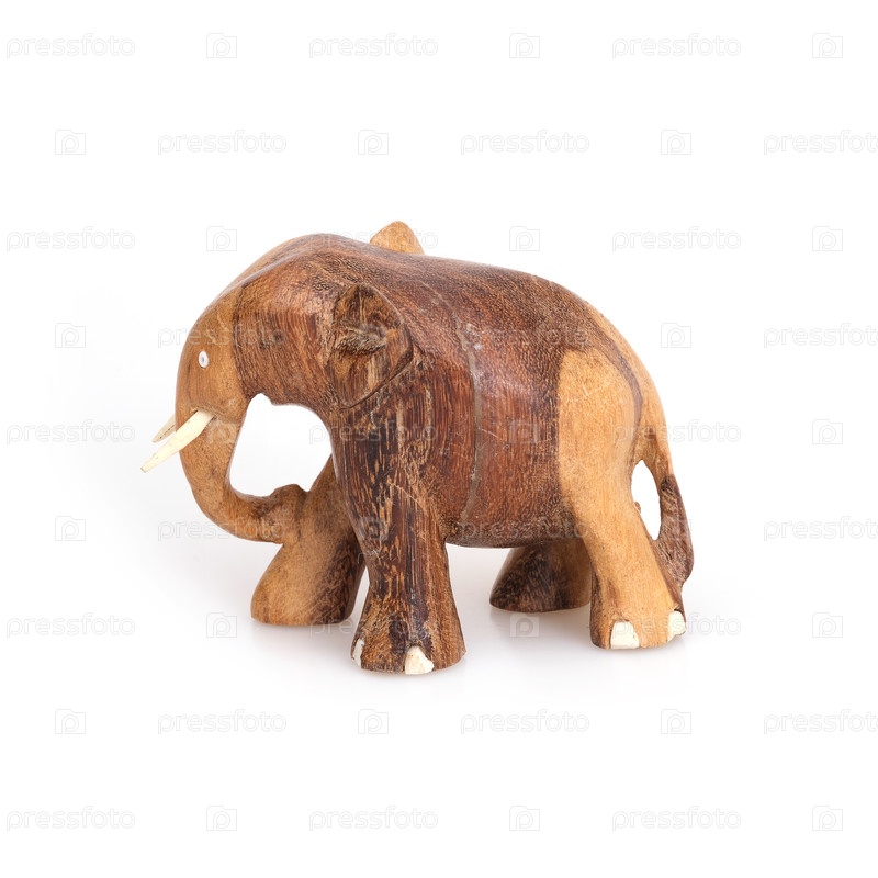 Сувенирный деревянный слон Изолирован на белом фоне