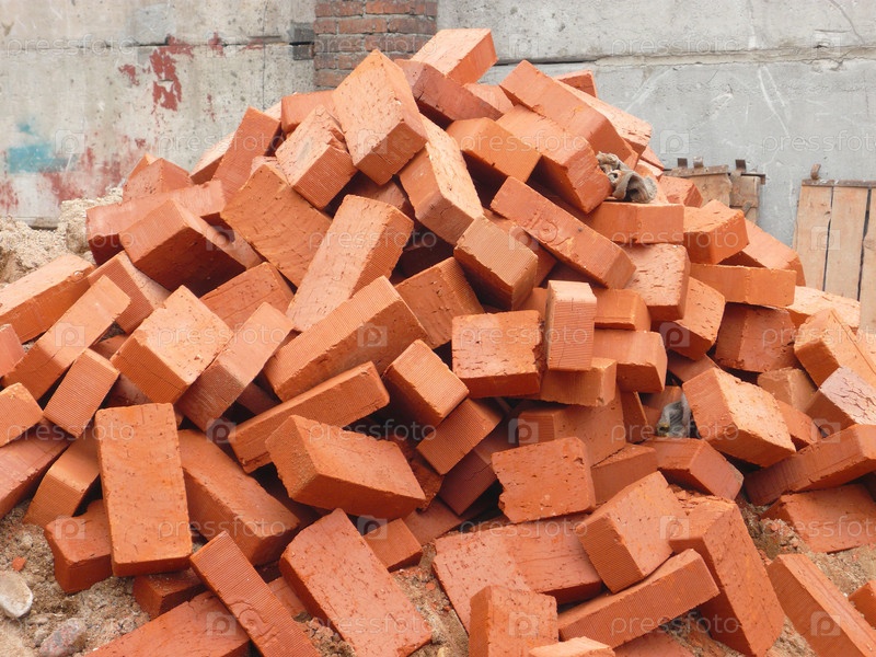 Куча красных кирпичей