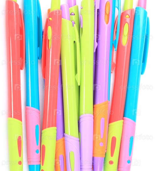 Многие шариковые ручки на белом фоне