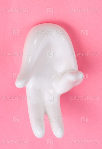Керамическая стойка с формой руки на розовом фоне