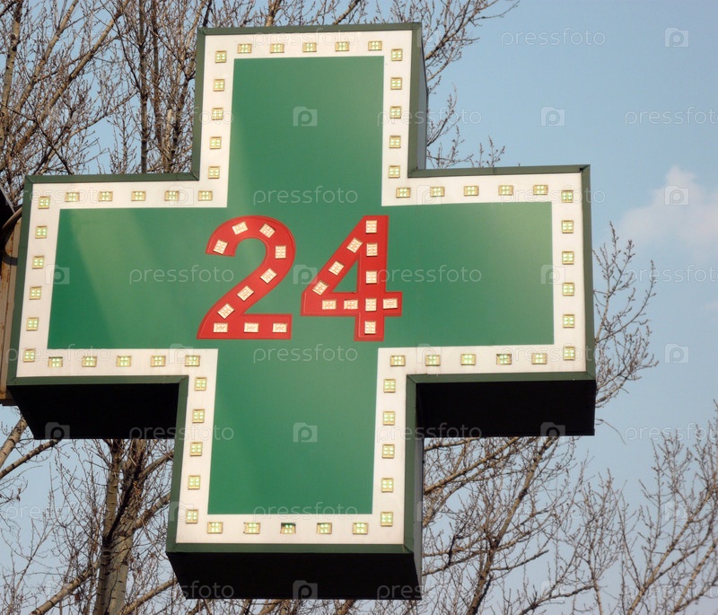 Медицинская 24-часовая аптека с вывесками