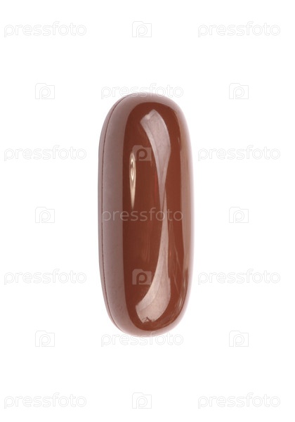 Одна коричневая желетиновая таблетка, выделенная на белом фоне