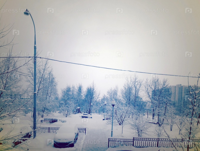 Городской парк после снегопада во второй половине дня