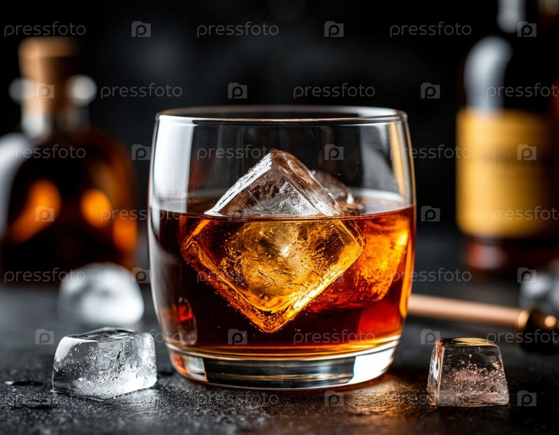 Коньяк в стакане со льдом