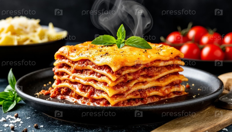 Горячие лазаньи с дымом на черном фоне