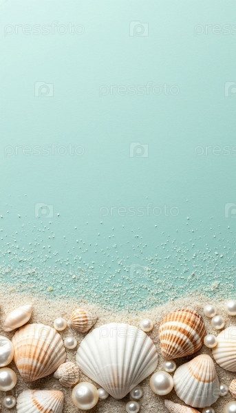 Раковины на пастельно-серо-синем минималистическом фоне