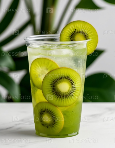 Лимонада с киви и кактусом на белом фоне