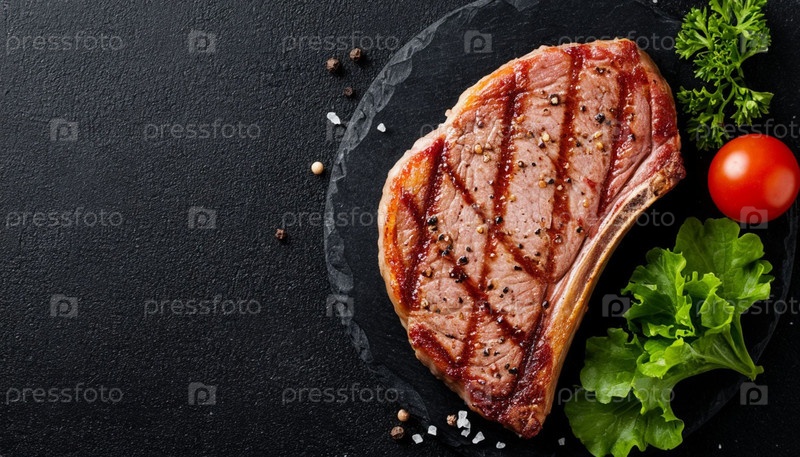 Вырезанная свинина на черном фоне, копирование пространства