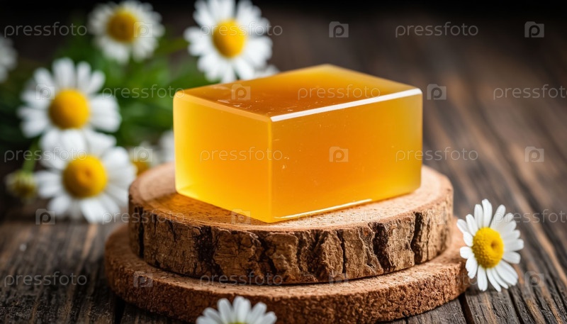 Естественное ромашковое мыло на деревянной стойке