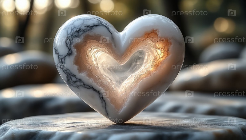 Яркий камень в форме сердца со светлым, романтичным внешним декором