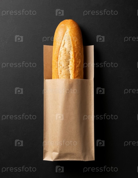 Хрустящий багет в ремесленной упаковке на черном фоне