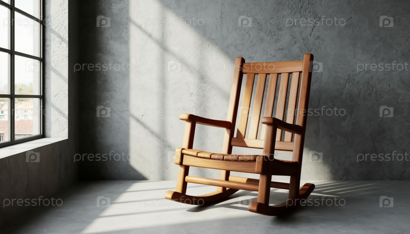 Деревянный качальный стул в пустой серой комнате