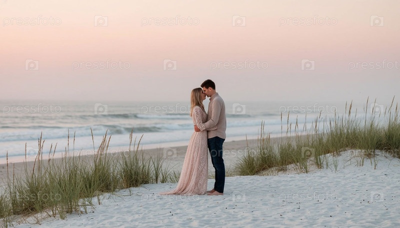 Мальчик и девочка у моря на рассвете