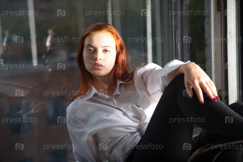 Красивая рыжеволосая девушка в белой рубашке