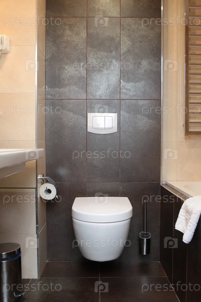 Белое полотенце на краю ванны Ванна и туалет Современный дизайн