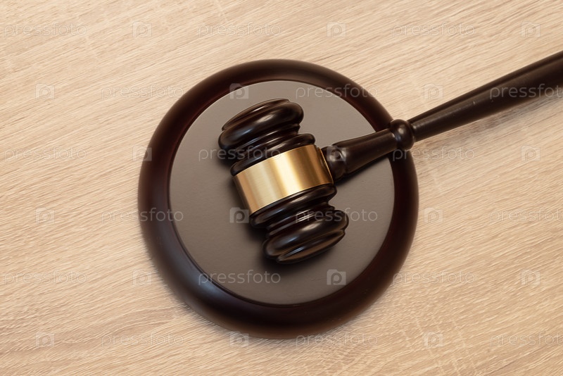 Деревянный молоток судьи на столе
