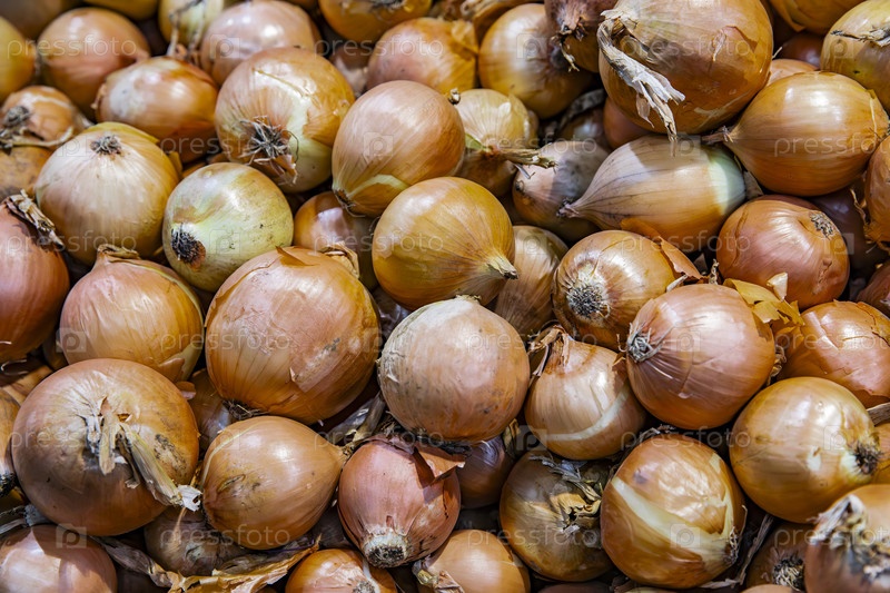 Лук, разбросанный на рынке