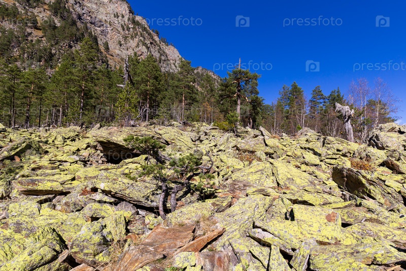 Вид на альпийское ущелье на Домбае в заповеднике Теберда