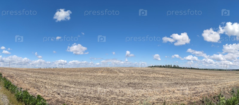 Наклонное поле под облаками
