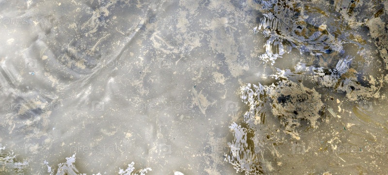 Чистая вода лесного озера. Волноватая поверхность воды в лучах заходящего солнца. Вы можете видеть песчаное дно через воду. Солнечные лучи проникают в воду по изогнутым линиям
