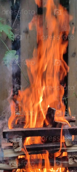 Яркое пламя горящего огня
