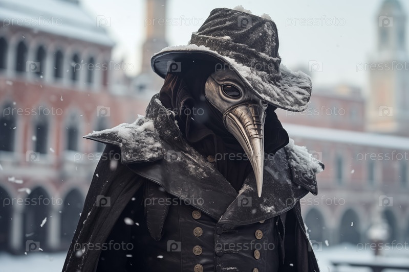 Таинственный врач от чумы на снежном карнавале в Венеции