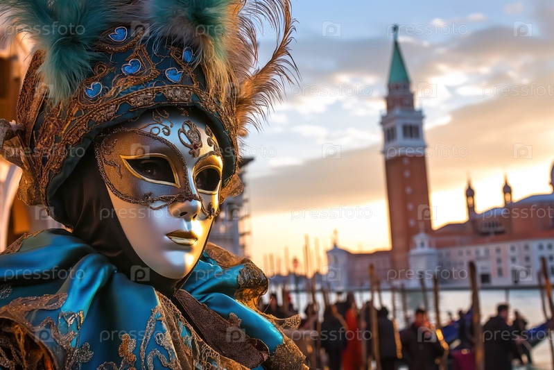 Элегантный мужчина в ярком карнавальном костюме и маске на Венецианском фестивале