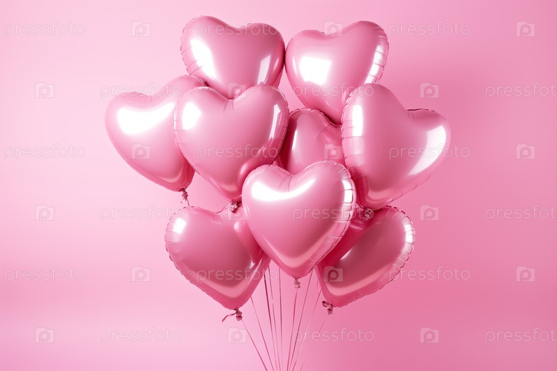 Куча блестящих розовых шаров в форме сердца на мягком розовом фоне, идеально подходит для Дня святого Валентина, годовщины или любого романтического события