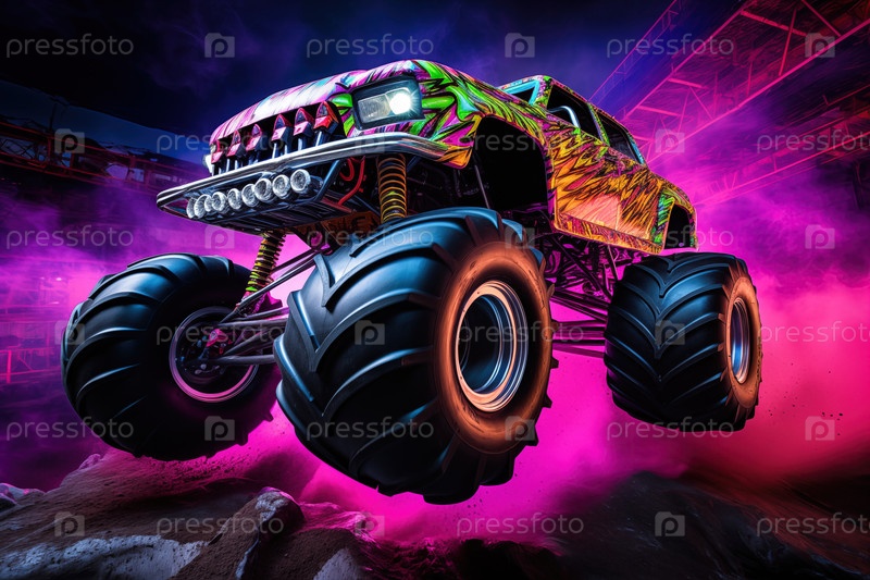 Неоно-литовский грузовик-монстр в действии в воздухе