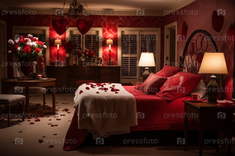 Романтический декор спальни на День святого Валентина