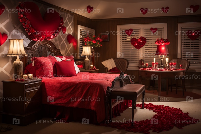 Романтический декор спальни на День святого Валентина