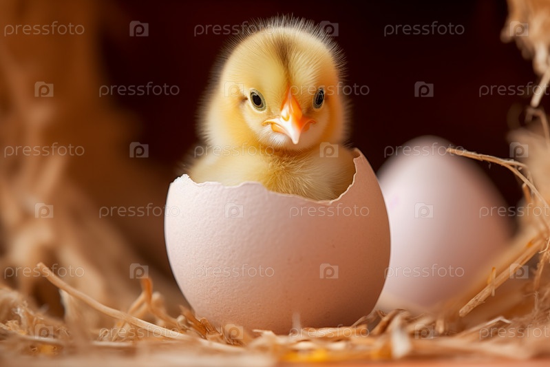 Новорожденная курица выходит из яичной раковины