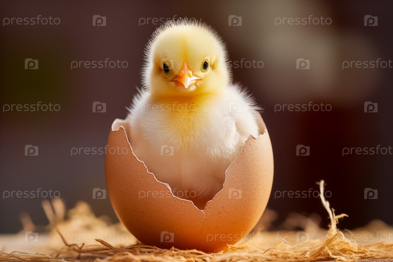 Новорожденная курица выходит из яичной раковины