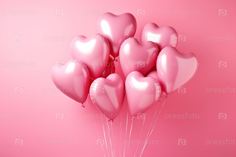 Куча блестящих розовых шаров в форме сердца на мягком розовом фоне, идеально подходит для Дня святого Валентина, годовщины или любого романтического события