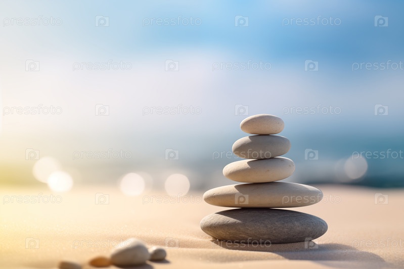 Камни Дзен складываются на песчаных волнах в минималистической обстановке для баланса и гармонии