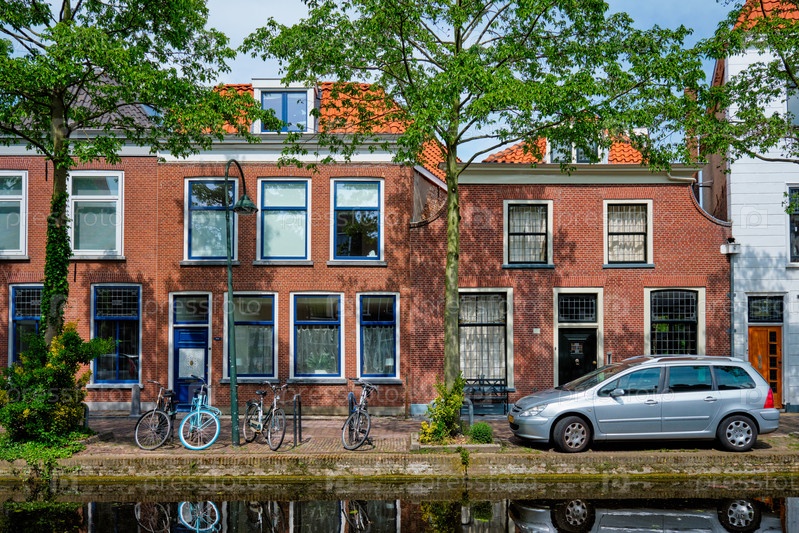 Автомобили на набережной канала на улице Делфт