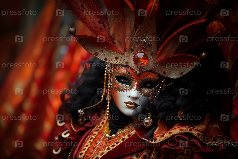 Элегантный мужчина в ярком карнавальном костюме и маске на Венецианском фестивале