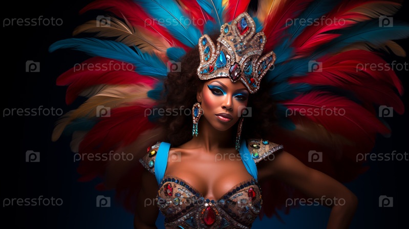 Талантливый талисман, украшенный ослепительным пернатым костюмом, погружается в энергичную атмосферу культового карнавала Рио-де-Жанейро.Изображение отражает суть праздника, цвета и культуры