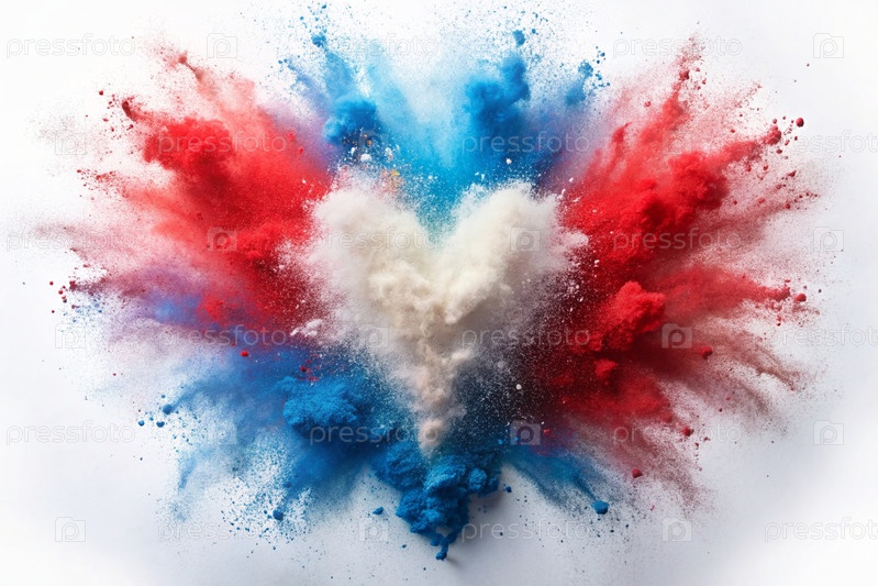 Концепция праздника День России 12 июня. Взрыв цветов в форме сердца, триколор России. Белый, синий, красный. Любовь к Родине